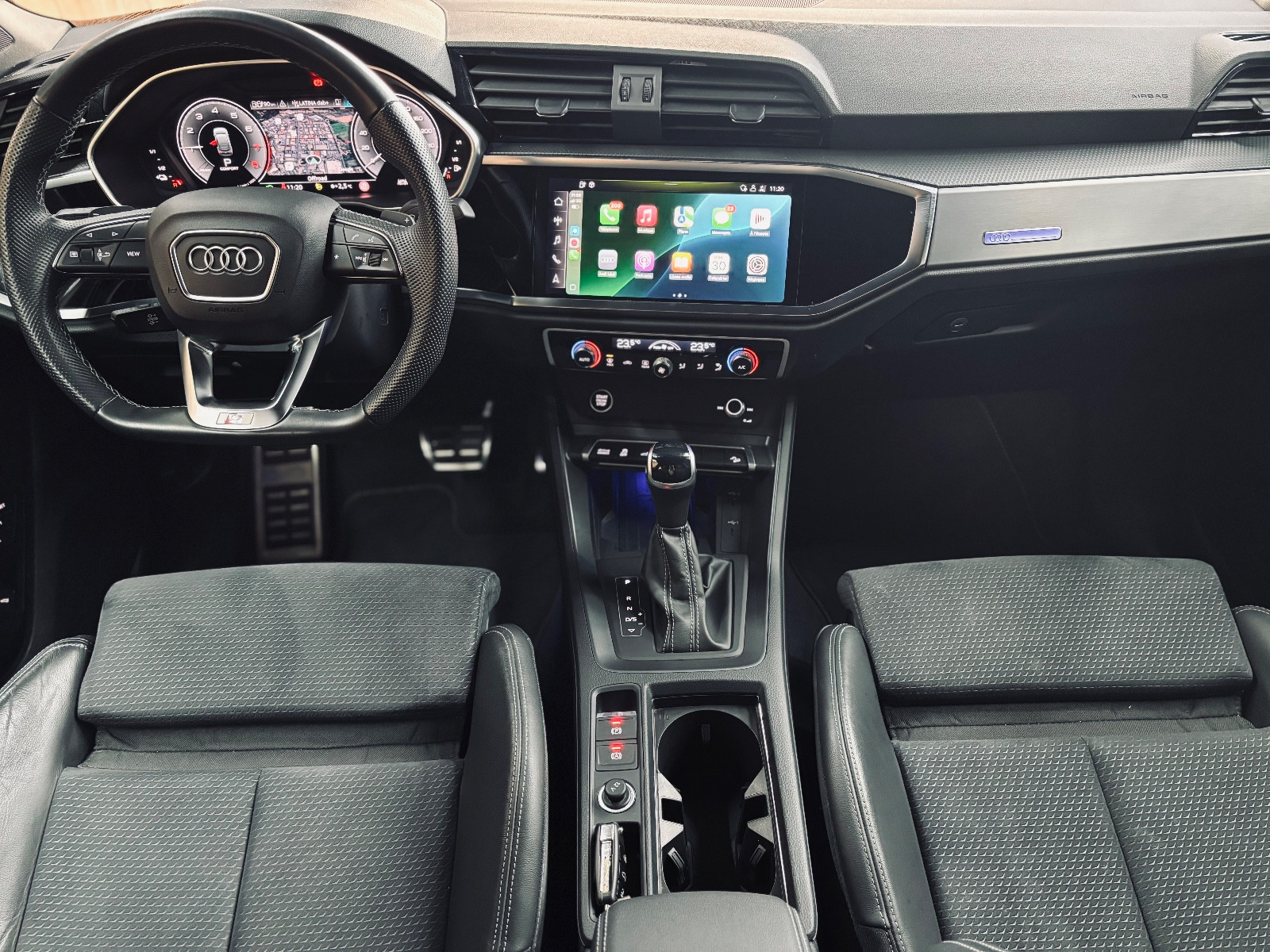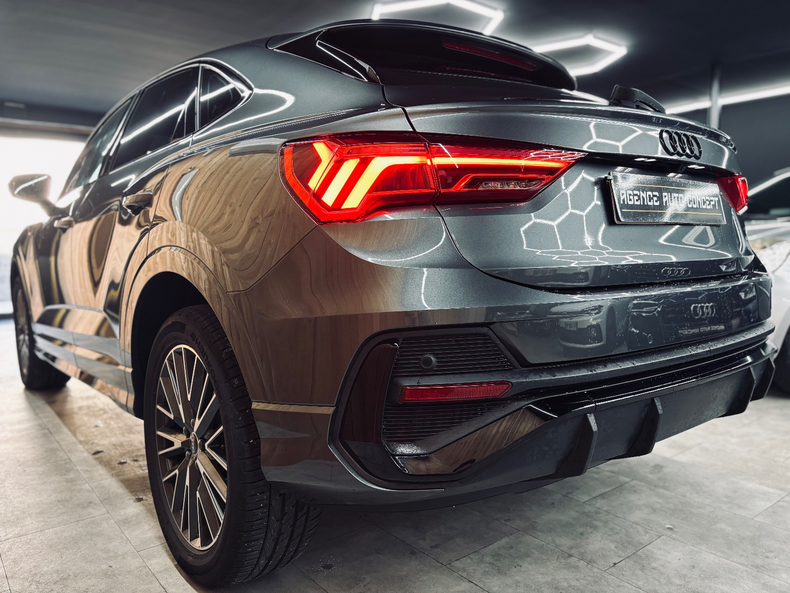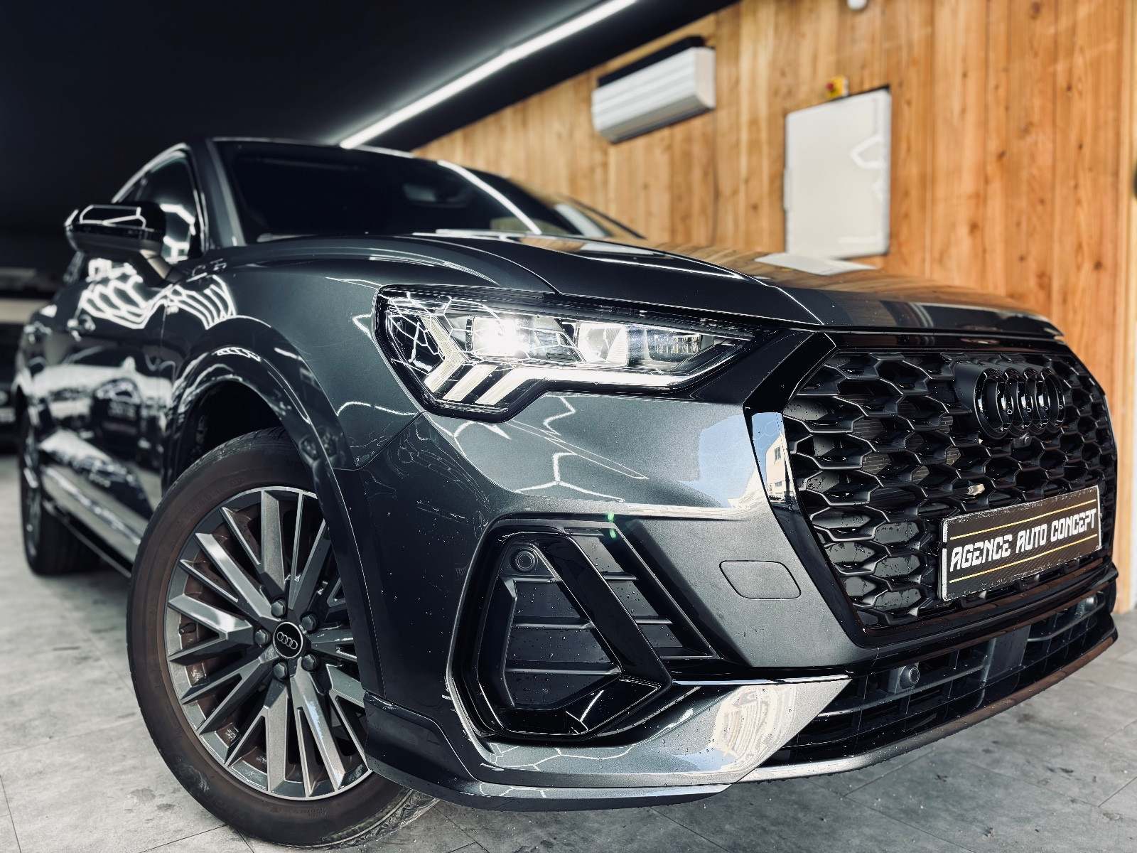 Accès-/démarrage sans clé Advanced Key (clé confort), Aide au stationnement AV et AR, visuel avec Caméra aide au recul (APS Advanced), Appuie-lombaires AV, à réglages électriques, Audi Drive Select, Audi music interface Online, Boîte de vitesses 6 rapports – Boîte automatique à double embrayage S-tronic, Cache bagages à commande électrique (ouverture + fermeture), Carrosserie: 4 portes, Chassis/Suspension sport S-line, Climatisation automatique Confort 2 zones, Garniture de pavillon Tissu, noir(e), Jantes alliage léger 8,5×19 (10 branches, finition/aspect Titane mat, poli, Audi exclusive / Audi Sport), Lave-phares (Lave-projecteurs), Multi-Media-Interface MMI Navigation Plus, Pack : S line, Pack Design noir(e) Audi exclusive, Pack éclairage int. LED, Pack Extérieur S line, Pack navigation, Peinture spécifique Audi exclusive, Pré-équipement téléphone/téléphone mobile avec Interface Bluetooth, Rétroviseur ext à réglages électriques, dégivrant et rabattable, Sellerie : Cuir Nappa fin avec logo en relief dans accoudoirs sièges AV, Sièges AV à réglages électriques, Sound-System DSP / Audi Sound-System, Système d’assistance de conduite: Assistance au démarrage (hold assist), Système d’assistance de conduite: assistance au stationnement, Système d’assistance de conduite: assistance au stationnement avec Caméra aide au recul, Système d’assistance de conduite: assistant changement de file (Side Assist), Système d’assistance de conduite: assistant changement de file et maintien de trajectoire (Side Assist et active lane as, Système d’assistance de conduite: assistant maintien de trajectoire (active lane assist), Système d’assistance de conduite: Contrôle de motricité en descente, Système d’assistance de conduite: Détecteur de pluie / luminosité et Feux de route automatiques, Système Start/Stop, Téléphone/téléphone mobile (Bluetooth) avec Audi connect, Téléphonie mains libres Bluetooth avec Reconnaissance vocale (Audi Phone Box), Trappe de chargement (Accoudoir central AR), Vitrage AR surteinté (vitrage Privacy), Volant de direction (Sport/cuir perforé – 3 branches) avec multifonctions et palettes changement vitesse, contactez-nous …………………….. INFORMATIONS…………………… Audi Q3 SPORTBACK 45 TFSIe 1.4L 245CH S LINE,