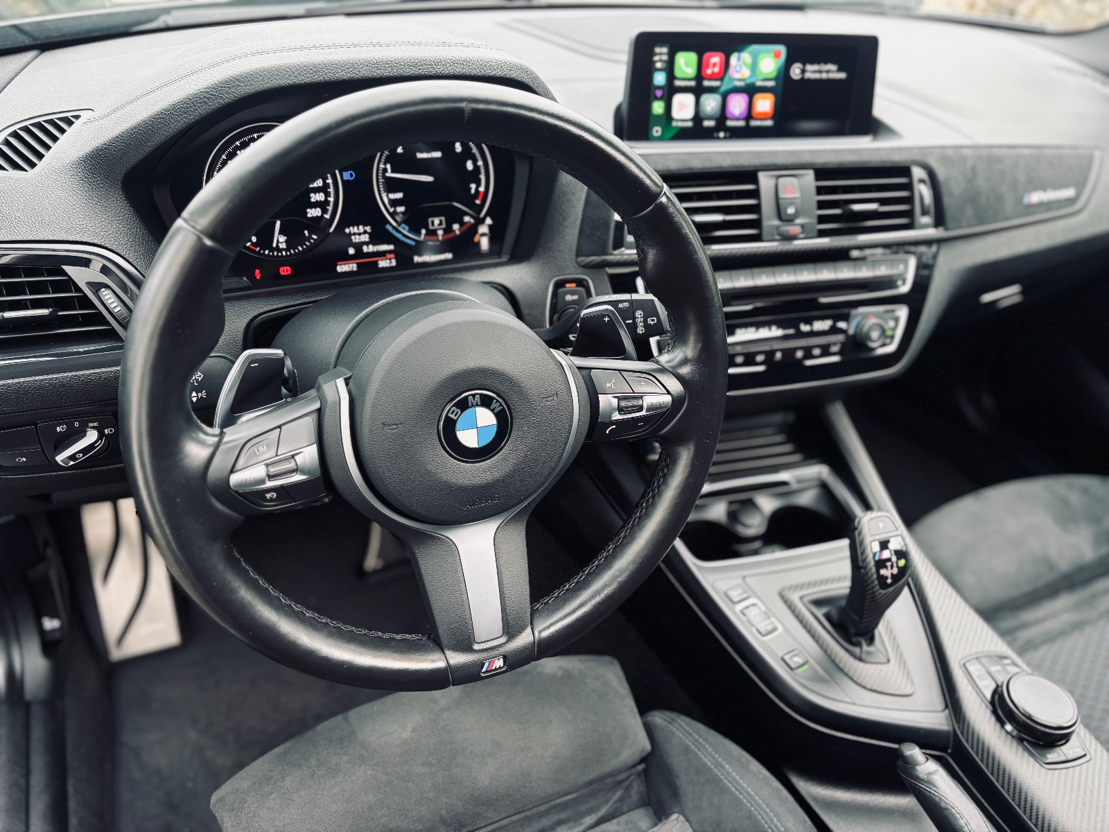 Accoudoir central AV réglable(s), Appuie-lombaire Siège AV gauche et droit, à réglages électriques, Appuie-têtes AR rabattable, Assistant de freinage, Boîte de vitesses Sport automatique – avec Steptronic (8 rapports), Bouton start-stop, Carrosserie: 5 portes, Chassis/Suspension sport (M-Technic), Climatisation automatique 2 zones avec contrôle autom. circulation d’air, Colonne de direction (Volant de direction) Réglage mécanique, Contrôle de traction dynamique (DTC), Contrôle dynamique de stabilité (ESP), Contrôle pression pneumatiques, Détecteur de pluie / luminosité, Direction assistée à commande électronique, Dossier AR fractionné, Equipement en sièges : 5 places, Equipement Ext. : Shadow-Line brillant, Essuie-vitre AR., Feu clignotant dans Rétroviseur ext intégré(e), Feux AR. LED, Frein de différentiel actif (ADB), Frein: M Freins sport (Étriers de frein peint), Garniture de pavillon Anthracite (BMW Individual), Lève-vitre électrique AR, Lève-vitre électrique AV, Mode de transmission xDrive (Transmission intégrale), Moteur 3,0 litre(s) – 250 kW, Multifonctions pour Volant de direction, Pack : ConnectedDrive Services, Pack : M Performance Shadow, Pack Aérodynamique M-Technic, Pack Confort, Pack Eclairage/Vision/Lumière, Pack sport M / M-Technic, Pack: carbone intérieur/extérieur, Park-Distance-Control (PDC) AV et AR, Peinture métallisée, Prise élect. (Prise 12V) additionnel, Projecteur LED, Rétroviseur ext couleur caisse, Sellerie : Tissu Hexagon / Alcantara, Siège chauffant AV, Sièges sport AV, Surtapis velours, Système d’antiblocage de frein (ABS), Système d’assistance de conduite: Assistance au démarrage, Système d’assistance de conduite: Driving Assistant, Système d’assistance de conduite: Feux de route automatiques, Système d’assistance de conduite: Sélecteur profil de conduite, Système d’assistance de conduite: Système d’aide au stationnement, Système de service : Apple CarPlay Information (Préparation/Pré-équipement), Système Start/Stop (fonction), Téléphonie mains libres Bluetooth avec étendu connexion pour smartphone, Téléphonie mains libres Bluetooth avec Interface audio USB, Toit ouvrant levant coulissant électrique (Transparent), Trappe de chargement (Accoudoir central AR), Variable Direction sport, Verrouillage centralisé avec Cde à distance, Volant de direction (Sport/cuir M-Technic) avec multifonctions, contactez-nous …………………….. INFORMATIONS…………………… BMW SERIE 1 M140 i 3.0L 340CH SPORT XDRIVE,