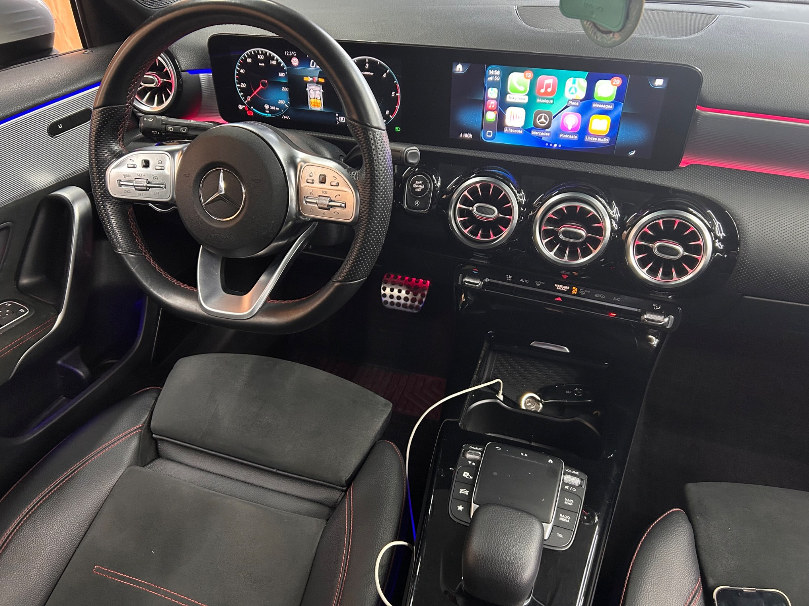 Airbag conducteur et passager, Airbag coté passager désactivable, Airbag de bassin AV (Pelvisbag), Airbag genou conducteur, Airbag lat (Sidebag) AV, Alarme / Affichage état pour Ceintures de sécurité à l’AR, AMG Pack Cuir, Antenne pour Téléphone (GPS), Boîte de vitesses 8 rapports – Boîte automatique à double embrayage DCT, Capot actif pour protection des piétons, Capteur de pluie/Capteur de luminosité, Carrosserie: 5 portes, Cde vocale Fonctions étendues (MBUX), Chassis/Suspension sport avec amortisseurs réglables (AMG Performance), Climatisation automatique (Thermatic), Climatisation automatique Confort (Thermotronic), Configuration véhicule (services en ligne / Apps), Connexion USB à l’AR, Contrôle dynamique de stabilité (ESP), Contrôle pression pneumatiques, DAB-Tuner (Réception radio digital(e)), Digit(al)(ale)(aux)(ales) Affichage instruments, Direction assistée, Direction paramétrique, Dossier AR deux parties / rabattable, éclairage ambiant, éclairage diurne LED, Equipement Int. enjoliveurs Carbone, Equipement Int. enjoliveurs Carbone, foncé, Essuie-vitres avec Capteur de pluie, Filet de rangement / Aumônière sur dossier de siège avant, Frein: Version sport, Garniture Int. de pavillon Tissu, Jantes alliage léger 6,5×17 (10 branches), Jantes alliage léger 6,5×17 (5 branches doubles), Jantes alliage léger 7,5×18 (AMG, 5 branches doubles, gris tremolit), Keyless Go Système de démarrage, Kit de réparation pneumatiques (Tirefit), Lève-vitre électrique AV + AR, Mercedes-Benz Système d’appel d’urgence, Module de communication (LTE) Préparation/Pré-équipement Mercedes me connect, Moteur 2,0 litre(s) – 110 kW CDI Catalyseur, Pack : Advanced, Pack : Premium, Pack : Sport Black AMG, Pack Lumière & Visibilité, Pack sport (AMG / AMG-Line), Pare-soleil avec miroir(s) (éclairé(e)), Peinture unie blanc polaire, Pré-équipement auto-partage, Pré-équipement digit(al)(ale)(aux)(ales) Radio, Régul. vitesse, Régul. vitesse avec Régulation de distance / Distronic Plus, Rétroviseur ext à réglage électrique et dégivrant, (D+G), Sellerie : Cuir, bi-ton (AMG), Sellerie : Tissu / simili-cuir Artico, Siège chauffant AV, Support à boissons AV (Double), Surveillance véhicule (Système de localisation du véhicule), Système d’airbag crânien (Airbag rideau), Système d’antiblocage de frein (ABS), Système d’assistance de conduite: actif (active) Assistant de freinage, Système d’assistance de conduite: actif (active) assistant maintien de trajectoire, Système d’assistance de conduite: Agility Select / Dynamic Select (Interrupteur mode de conduite), Système d’assistance de conduite: Assistant limitation de vitesse, Système d’assistance de conduite: Système info-trafic Live Traffic, Système de service : MBUX Augmented Reality pour Navigation, Système Multimedia MBUX (Connect 20 MID), Toit ouvrant panoramique, Touchpad (Console centrale), Verrouillage centralisé avec Cde à distance, Volant de direction (Cuir), Volant de direction (Sport Cuir Nappa) avec multifonctions, Volant de direction avec Palettes de sélection/Boutons-poussoirs, galvanisé, contactez-nous …………………….. INFORMATIONS…………………… VÉHICULE FRANCAIS AVEC SUIVI COMPLET MERCEDES22/02/2024 SERVICE B À 40079 KM MERCEDES02/06/2025 SERVICE A1 PLUS À 44141 KM MERCEDESFRAIS DE MISE EN SERVICE 1000€ INCLUANT