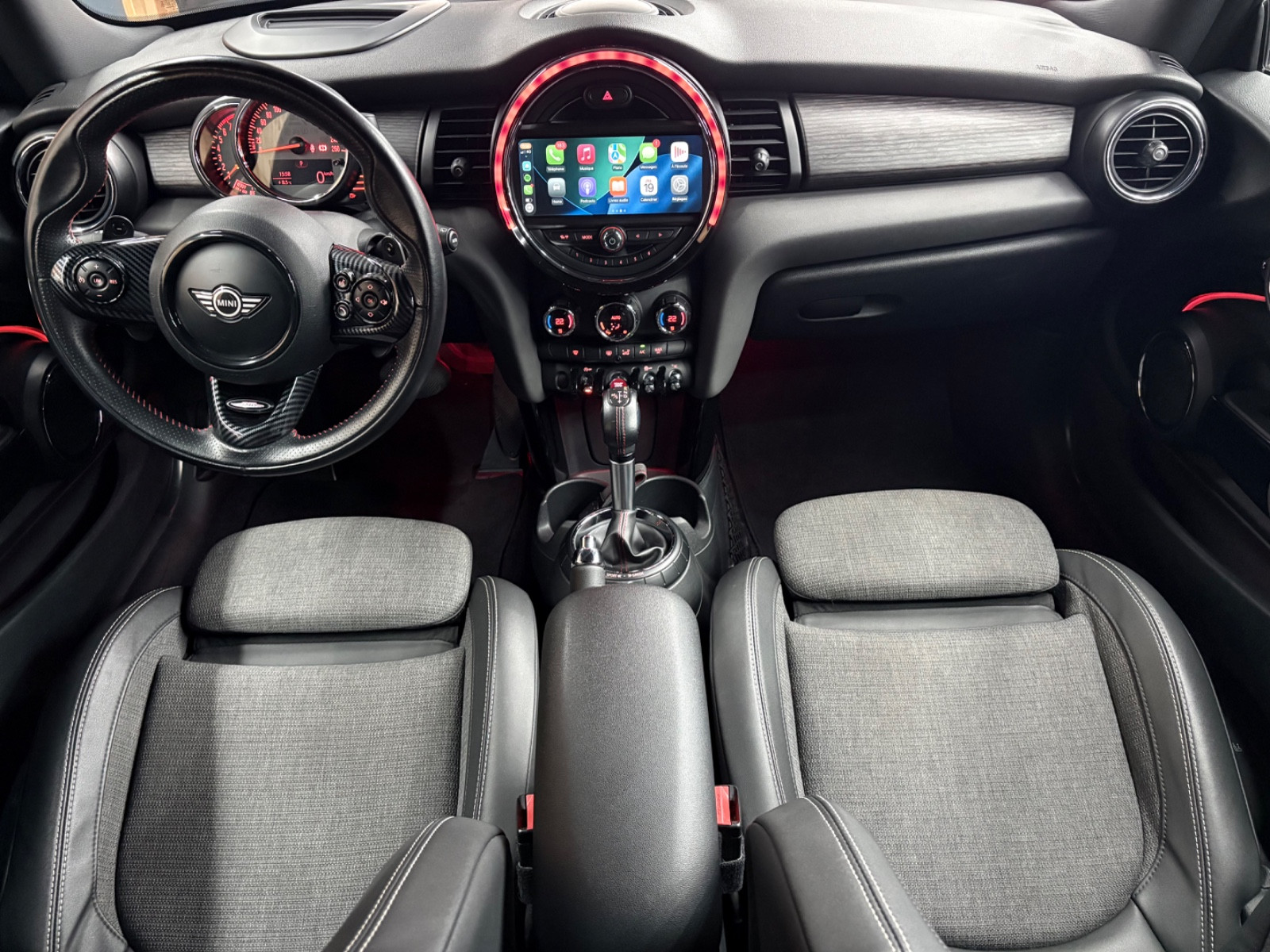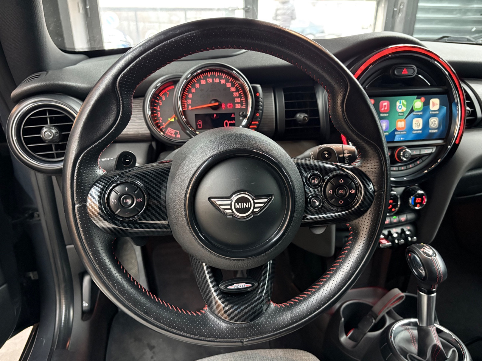 – Carplay, 3. Feu Stop, Accès confort (accès-/démarrage sans clé), Adaptation conduite sportive, Afficheur tête haute, Airbag conducteur et passager, Antidémarrage, Appuie-têtes, Bas de caisse, crosses de pare-choc et Elargisseur de passage de roue noir(e), Becquet de pavillon, Boîte automatique – (6 rapports), Bouton start-stop, Caméra aide au recul, Carrosserie: 3 portes, Climatisation, Colonne de direction (Volant de direction) Réglage mécanique, Compte-tours, Connexion AUX-IN (AUX-IN), Contrôle de traction dynamique (DTC), Contrôle dynamique de stabilité (ESP), Direction assistée Servotronic, Dossier AR fractionné, Dynamique Feu Stop, échappement (double tube) avec Enjoliveurs chromés, échappement (Système monotube) avec embout, éclairage diurne, Electro. Répartiteur de frein, Equipement Int. Color-Line Carbone Black, Equipement Int. MINI Yours Intérieur Style Dark Cottonwood, Essuie-vitre AR., Garniture de pavillon Satellite Grey, Gicleurs de lave-vitre et Rétroviseur ext Chauffant(e), Indicateur de passage des rapports, Indicateur de température Ext., Instrument central avec anneau LED, Jantes alliage léger 7×17 (Tentacle Spoke), Lève-vitre électrique AV, Moteur 2,0 litre(s) – 141 kW 16V, Pack visibilité, Pare-soleil avec miroir(s), Park-Distance-Control (PDC), Pavillon couleur caisse, Peinture spéciale Moonwalk Grey, Poignées de portes Int. chromé(e), Projecteur LED, Projecteurs antibrouillard LED, Réglage de portée des projecteurs, Rétroviseurs ext/int avec fonction électrochrome, Sellerie : Tissu Firework, Sièges AV mécanique réglable(s), Sièges sport AV, Spoiler AR., Support à boissons, Supports Isofix pour siège enfant, Système audio MINI visuel Boost (comprenant Afficheur cristaux liquide), Système d’airbag crânien AR, Système d’airbag crânien AV, Téléphonie mains libres Bluetooth avec Interface audio USB, Verrouillage centralisé avec Cde à distance, Volant de direction (Sport/cuir) John Cooper Works, contactez-nous …………………….. INFORMATIONS…………………… MINI COOPER S 2.0 192CH,