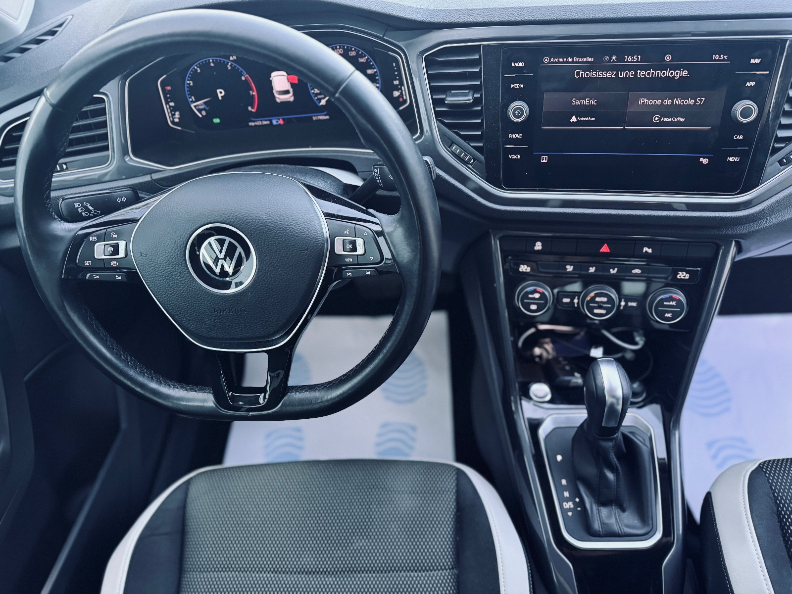 Accès-/démarrage sans clé Keyless Access, Accoudoir central AV, Active Afficheur d’information (affichage des instruments digital(e)), Afficheur multifonctions Plus, Aide au stationnement AV et AR, Alarme pour Ceintures de sécurité AV et AR, Antidémarrage (électronique), App-Connect comprenant App-Connect Wireless (Apple CarPlay, Android Auto), Appuie-lombaires AV, Appuie-têtes AR (x 3), Barre(s) de toit argent anodisé, Boîte de vitesses 7 rapports – Boîte automatique à double embrayage DSG, Caméra aide au recul (Rear View), Carrosserie: 5 portes, Ceinture de sécurité à 3 points AR central(e), Ceintures de sécurité AR Ext. avec prétensionneur de ceinture, Climatisation Climatronic 2 zones, Contrôle dynamique de stabilité (ESP), Contrôle dynamique de stabilité (ESP) Assistant de freinage, ASR/ABS, EDS, Dispositif de commande vocale, Dossier AR deux parties avec Accoudoir central, éclairage ambiant Blanc, Eclaireur de coffre, Eclaireur de plancher AV, Essuie-vitre AR., Essuie-vitres avec Commande temporisée, Feux de brouillard AR, Filtre à particules (FAP), Filtre d’habitacle Filtre à poussière et pollen avec Filtre à charbon actif, Fonction Auto-Hold, Frein de stationnement électrique, Garniture de pavillon Tissu, gris, Haut-parleurs (6), Interface Bluetooth pour Téléphone portable, Interface multimédia USB (iPhone / iPod) avec AUX-IN, Interface multimédia USB (type C), Jantes alliage léger 7×17 (Kulmbach, Gris Adamantium), Lève-vitre électrique AV et AR, Levier de sélection Cuir, Mode de transmission roues AV motrices, Moteur 1,5 litre(s) – 110 kW 16V TSI ACT, Pare-soleil avec miroir(s) (éclairé(e)), Peinture spéciale Pure-White, Poignées de portes Ext. couleur caisse, Prise élect. 12V à l’AR, Réglage de portée des projecteurs automatique, Rétroviseur ext à réglages électriques, dégivrant et rabattable, Rétroviseur ext peint, Roue de secours galette (gain de poids et de place), Sellerie : tissu/simili-cuir, Sièges AV réglable(s) en hauteur, Supports Isofix pour siège enfant sur Siège AR, Surtapis Textile, Système antipatinage (ASR), Système d’antiblocage de frein (ABS), Système d’assistance de conduite: Assistance au démarrage en côte, Système d’assistance de conduite: assistance au stationnement (Park Assist), Système d’assistance de conduite: assistant maintien de trajectoire (Lane Assist), Système d’assistance de conduite: assistant maintien de trajectoire (Lane Assist) comprenant Dynamic Light Assist, Système d’assistance de conduite: automatique régulation de distance (ACC), Système d’assistance de conduite: détection de la fatigue, Système d’assistance de conduite: Détection des piétons, Système d’assistance de conduite: fonction freinage d’urgence en ville, Système d’assistance de conduite: Reconnaissance des panneaux de signalisation, Système d’assistance de conduite: Réglage feux de route (Light Assist), Système d’assistance de conduite: régulateur de distance (ACC comprenant fonction Stop&Go), Système d’assistance de conduite: système de détection d’obstacles (Front assist) avec fonction freinage d’urgence en vi, Système Start/Stop, Verrouillage centralisé avec Cde à distance, Volant de direction (Cuir) avec multifonctions, contactez-nous …………………….. INFORMATIONS…………………… Volkswagen t-ROC 1.5L 150CH CARAT, Véhicule Français, 2ème Main, Suivi et Entretenu, Garantie 12 Mois, Révisions: – Le 16/03/2023 à 16 943 Km chez Volkswagen – Le 31/03/2025 à 40 194 Km chez Centre Auto – Le 24/09/2025 à 50 399 Km chez Centre Auto ( Disque + Plaquette Av) FRAIS DE MISE EN SERVICE 990€ INCLUANT Préparation Esthétique Complète + Demi plein + Prise en Main du Véhicule + Carte grise Sur demande Possibilité de rajouter : Caméra de recul + Radar de recul + Caisson FOCAL + Kit Maxton + Attelage + Carplay – FINANCEMENT POSSIBLE DE 3000 à 100.000 euro jusqu'à 84 mois – REPRISE POSSIBLE sous conditions – LIVRAISON POSSIBLE dans toute la France et la Corse – VIDEO Complète du véhicule sur les annonces ou sur YouTube – VISITE UNIQUEMENT SUR RDV